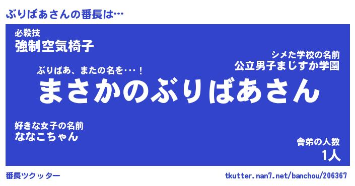 意味不明あだ名 | 『ペロリンぶりばあ』『永久保存ぶりばあ』 |