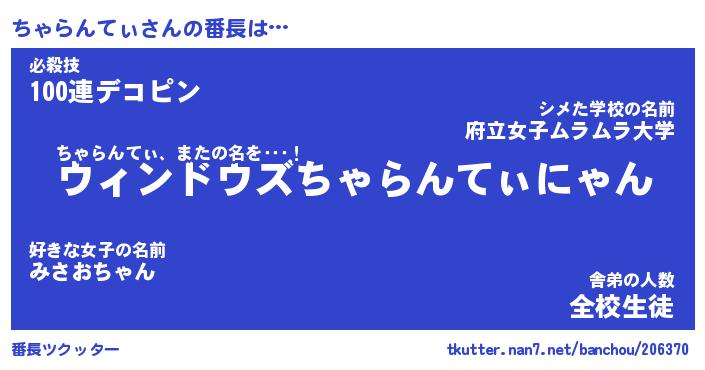 伝説のあだ名 | 『伝説のスナイパーちゃらんてぃ』 |