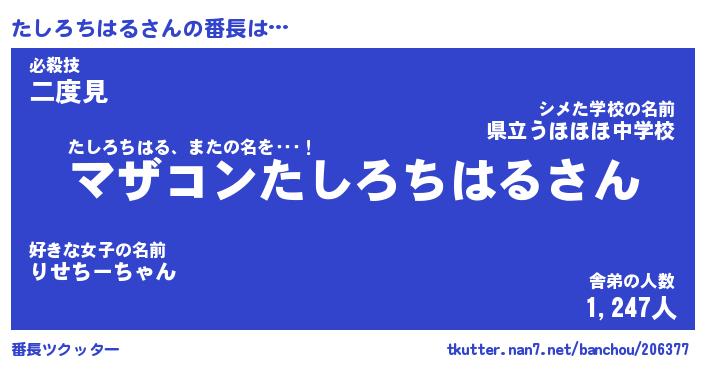 ヒーロー風カッコイイあだ名 | 『スーパータシロチハル』『銀牙騎士タシ』 |