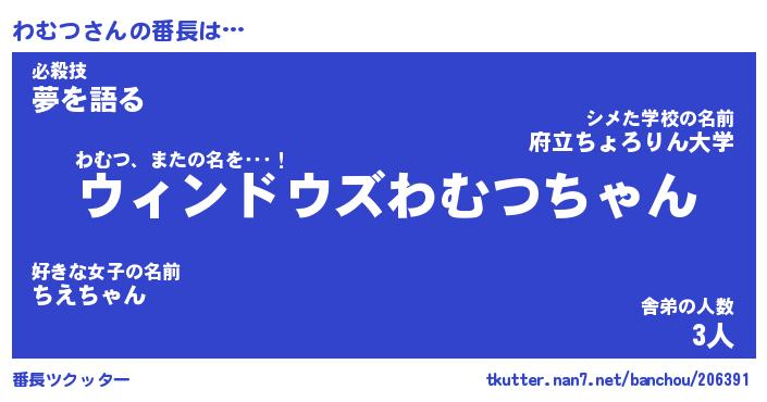 | ヘコむあだ名 | 『わむにゅー』『豆乳』『わむ太郎』 |