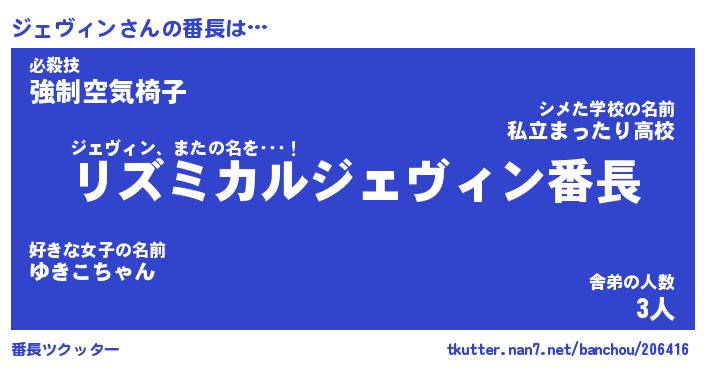 | ファンタジー風あだ名 | 『ジェフェル』『エターナルジェヴィンー』 |