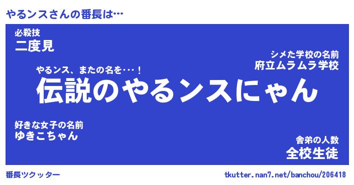 | 意味不明あだ名 | 『ペロリンやるンス』『永久保存やるンス』 |
