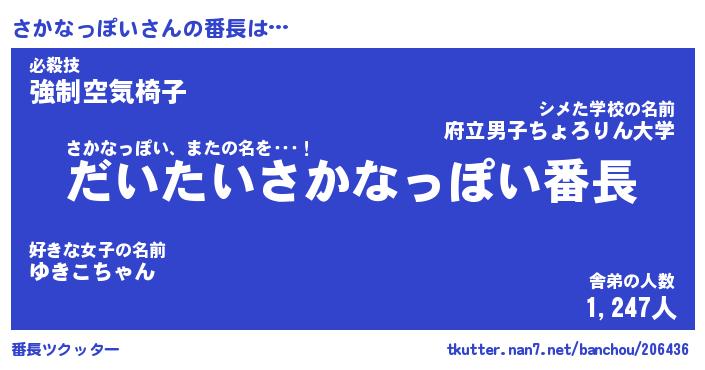 | ヒーロー風カッコイイあだ名 | 『スーパーサカナッポイ』『銀牙騎士サカ』 |
