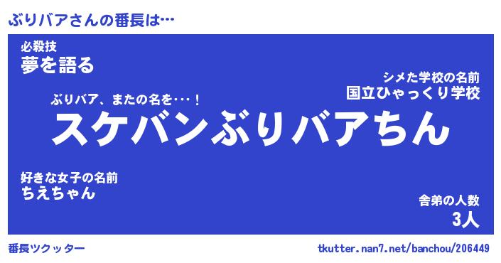 | 肩書あだ名 | 『ぶりバア社長』『ぶりバア大統領』 |