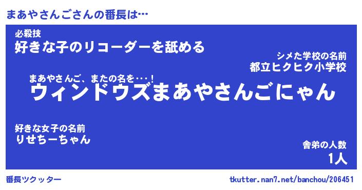| 2回繰り返すあだ名 | 『まあまあ』『ままああ』『いじいじ』 |