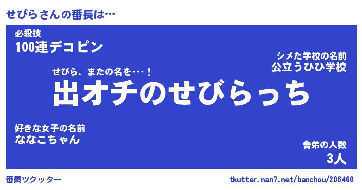 | ヘコむあだ名 | 『せびにゅー』『つくし』『せびお』 |