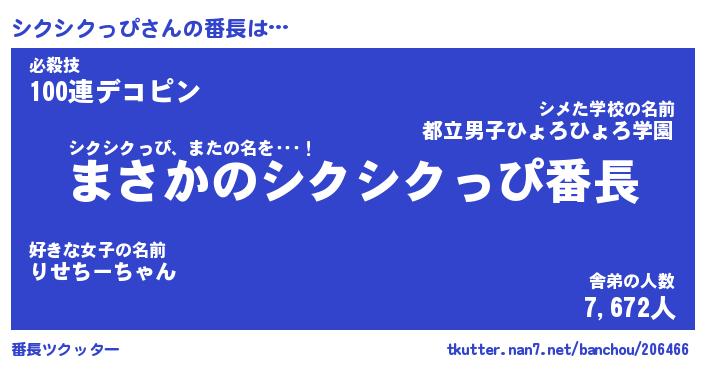 | ピコ太郎風あだ名 | 『シコ四郎』『ピシ史郎』『シク六郎』 |