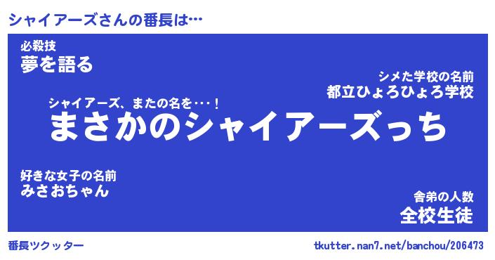 | 男性向けラノベタイトル風あだ名 | 『シャイアーズの憂鬱』 |
