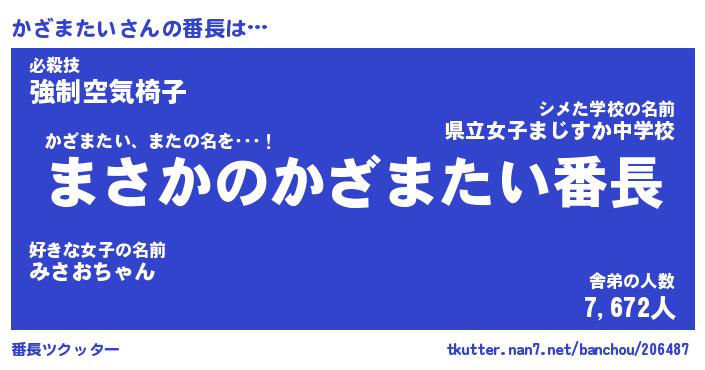 | 男性向けラノベタイトル風あだ名 | 『かざまたいの憂鬱』 |