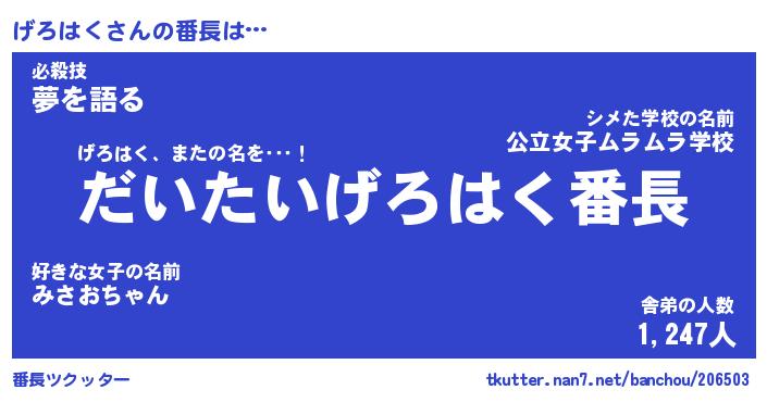 | ファンタジー風あだ名 | 『ゲロフェル』『エターナルゲロハクー』 |