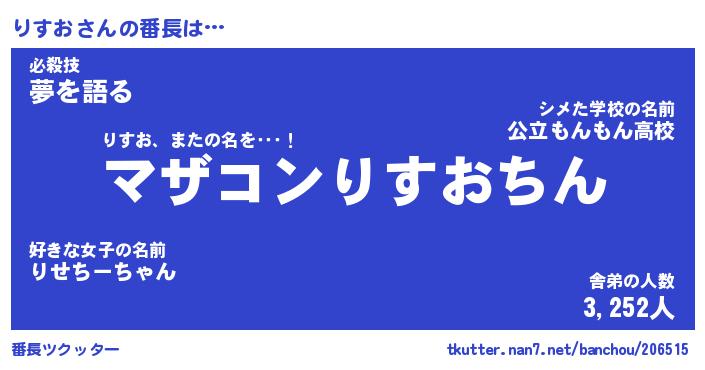 | 意味不明あだ名 | 『ペロリンりすお』『りすおフォーエバー』 |