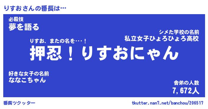 | 意味不明あだ名 | 『ペロリンりすお』『りすおフォーエバー』 |