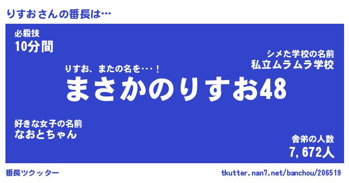 | 意味不明あだ名 | 『ペロリンりすお』『りすおフォーエバー』 |
