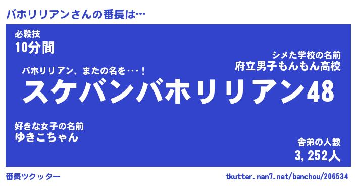 | 2回繰り返すあだ名 | 『バホバホ』『ババホホ』『おらおら』 |