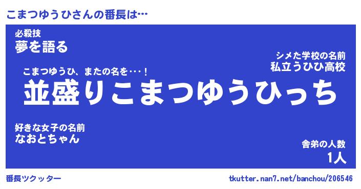 | ヒーロー風カッコイイあだ名 | 『スーパーコマツユウヒ』『黄金騎士コマ』 |