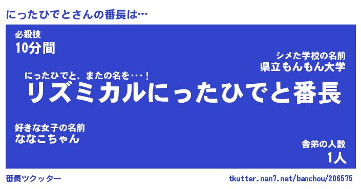 | 男性向けラノベタイトル風あだ名 | 『にったひでとの憂鬱』 |