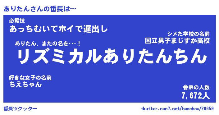| 意味不明あだ名 | 『ペロリンありたん』『永久保存ありたん』 |