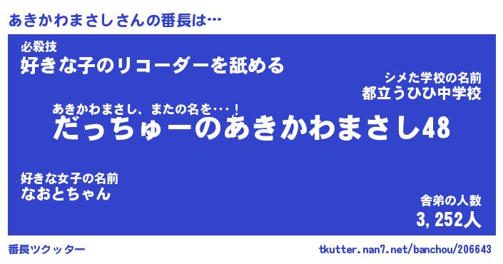 | 肩書あだ名 | 『あきかわまさし社長』 |