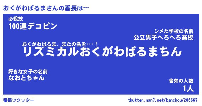 | 肩書あだ名 | 『おくがわばるま店長』 |