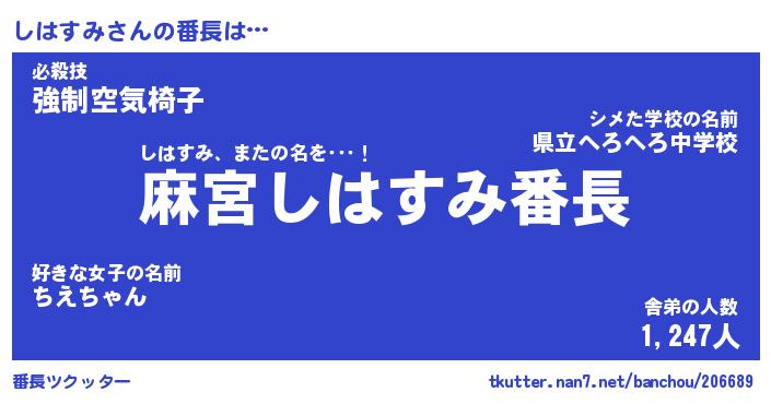 | ヒーロー風カッコイイあだ名 | 『スーパーシハスミ』『銀牙騎士シハ』 |