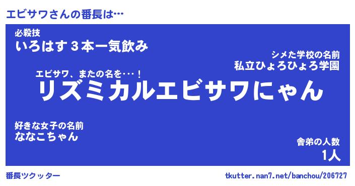 意味不明あだ名 | 『ペロリンエビサワ』『永久保存エビサワ』 |