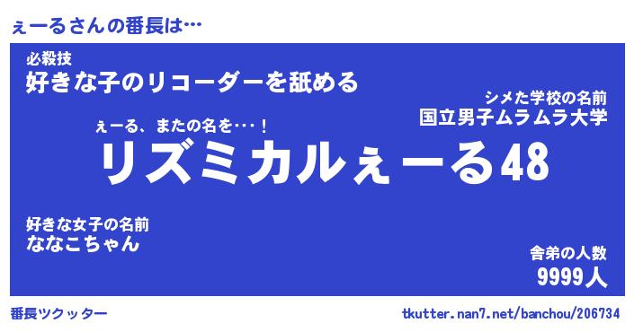| 胡散臭い通販商品みたいなあだ名 | 『必ず成功するブレスレット…その名も「ぇーる」』 |
