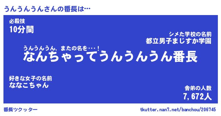 | ヒーロー風カッコイイあだ名 | 『スーパーウンウンウン』『炎刃騎士ウン』 |