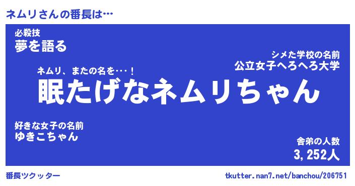 | 肩書あだ名 | 『ネムリCEO』『ネムリ大統領』 |