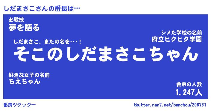 | 肩書あだ名 | 『しだまさこ御曹司』『しだまさこ大統領』 |