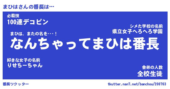 | ヒーロー風カッコイイあだ名 | 『スーパーマヒハ』『ウルトラまひはマン』 |