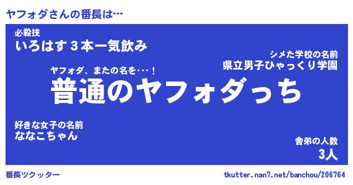 | ヘコむあだ名 | 『ヤフにー』『なまこ酢』『ヤフ太郎』 |