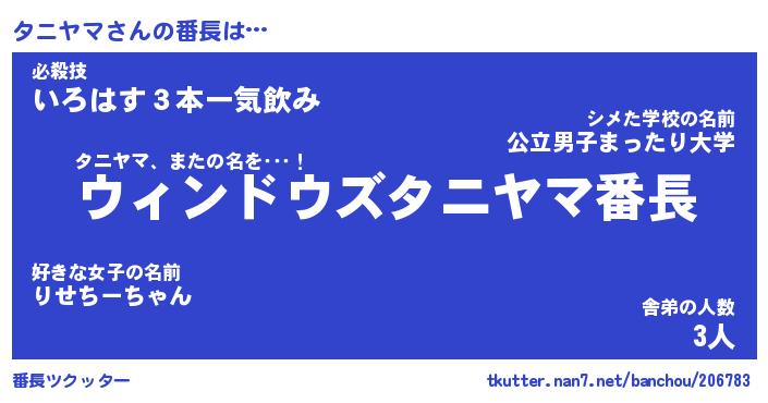 | ヒーロー風カッコイイあだ名 | 『スーパータニヤマ』『幻影騎士タニ』 |