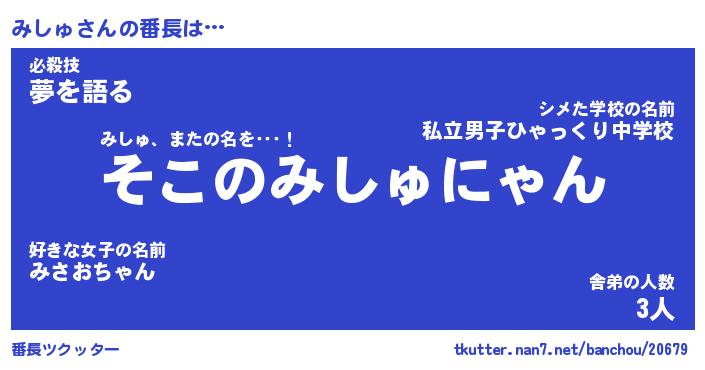 | 肩書あだ名 | 『みしゅ御曹司』『みしゅ総理大臣』 |