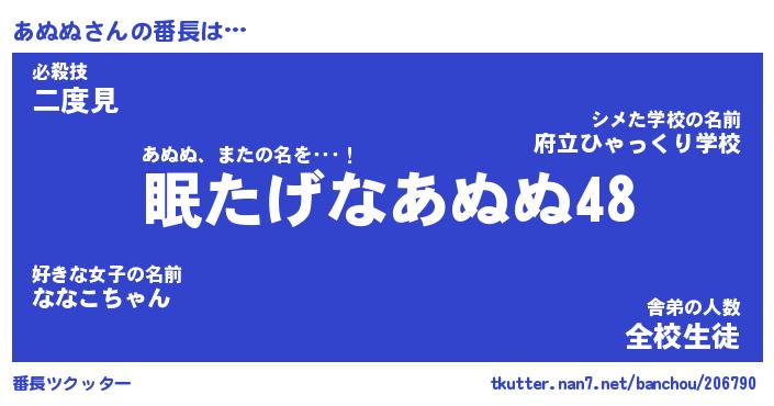 | ファンタジー風あだ名 | 『アヌフェル』『エターナルアヌヌー』 |