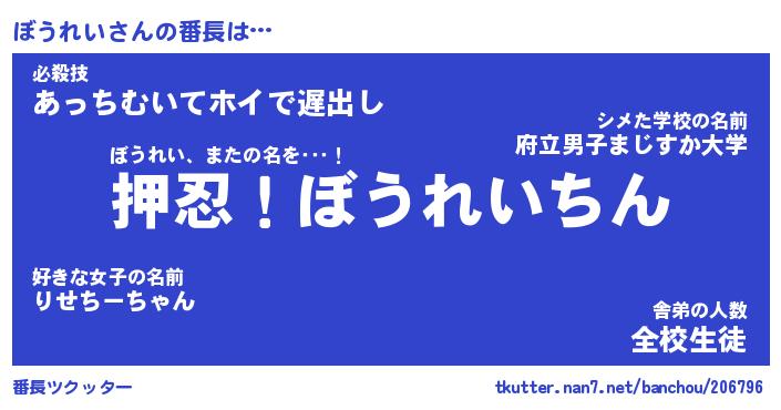 | 意味不明あだ名 | 『ペロリンぼうれい』『永久保存ぼうれい』 |