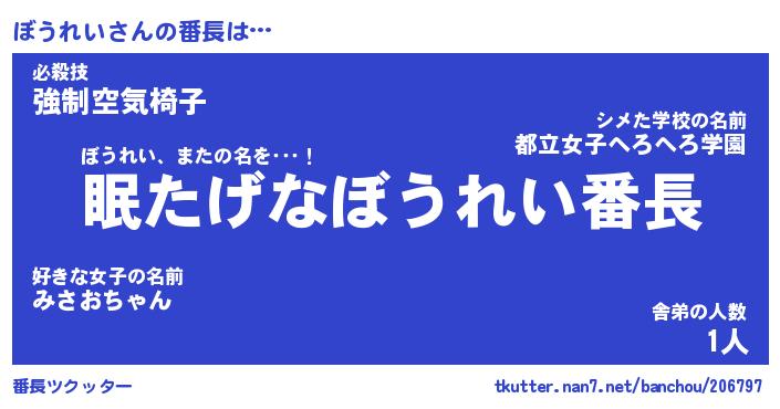 | ヘコむあだ名 | 『ぼうふぇ~』『つくし』『ぼうを』 |