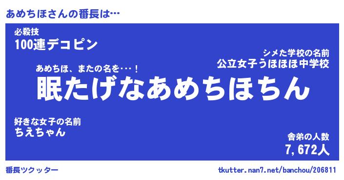 | 肩書あだ名 | 『あめちほ社長』『あめちほ国家主席』 |