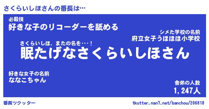 伝説のあだ名 | 『封印されしスナイパーさくらいしほ』 |