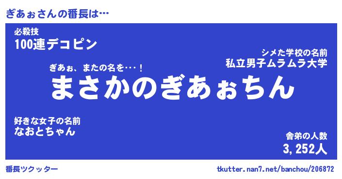 伝説のあだ名 | 『伝説のスナイパーぎあぉ』 |