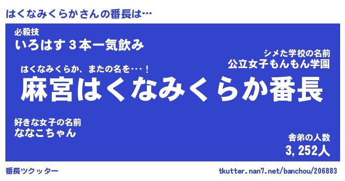 ピコ太郎風あだ名 | 『ハコ一郎』『ピハ四郎』『ハク十郎』 |