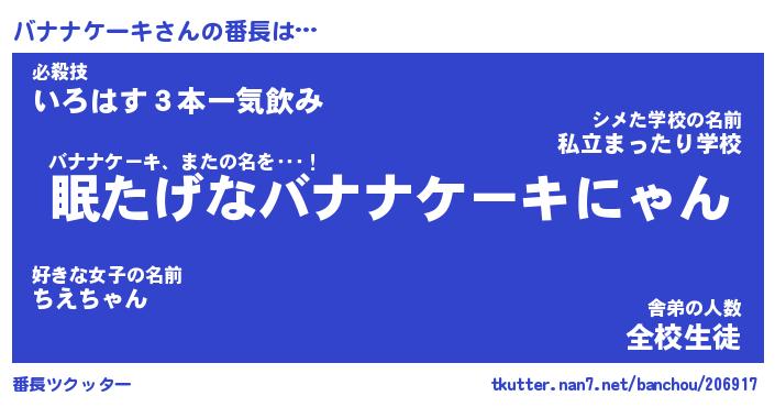 | 男性向けラノベタイトル風あだ名 | 『バナナケーキアートオンライン』 |