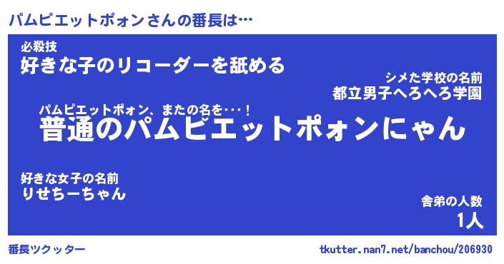 | 男性向けラノベタイトル風あだ名 | 『パムピエットポォンの憂鬱』 |