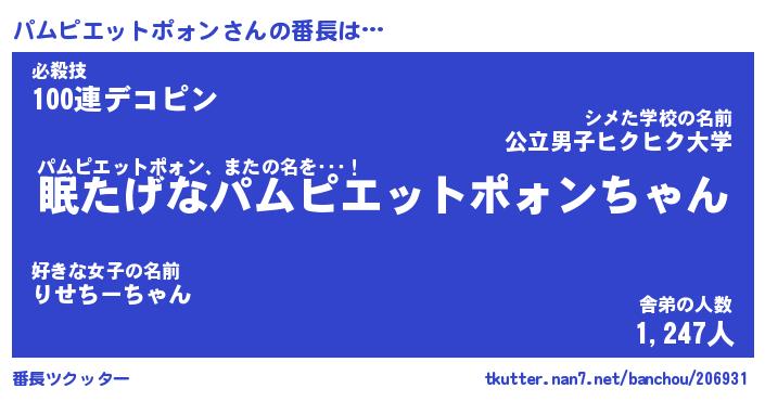 | ポケモン風あだ名 | 『パムチュウ』『パムピダネ』 |
