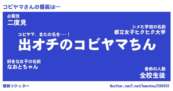 ファンタジー風あだ名 | 『コビフェル』『エターナルコビヤマー』 |