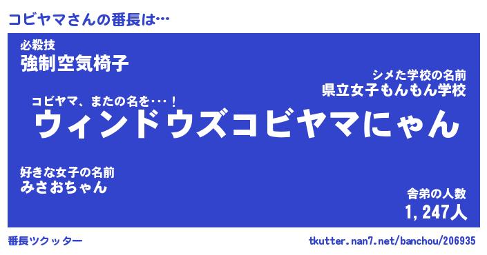 ヘコむあだ名 | 『コビふぇ~』『牛乳』『コビぷりん』 |