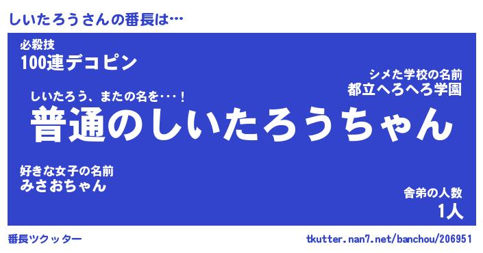 肩書あだ名 | 『しいたろう御曹司』『しいたろう班長』 |