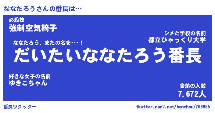 肩書あだ名 | 『ななたろう社長』『ななたろう総理大臣』 |