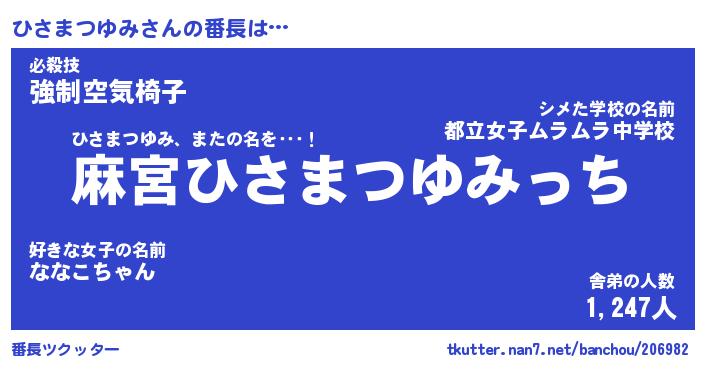 | ヒーロー風カッコイイあだ名 | 『スーパーヒサマツユミ』『暗黒騎士ヒサ』 |