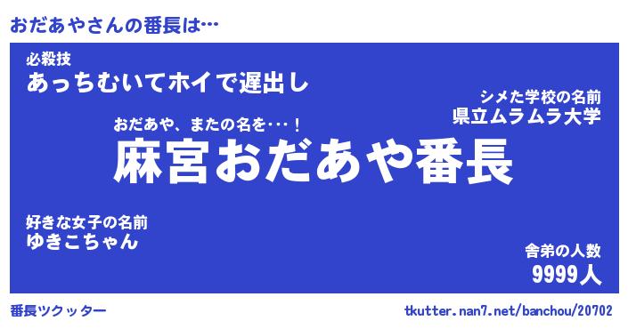 | ヘコむあだ名 | 『おだにゅー』『なまこ酢』 |