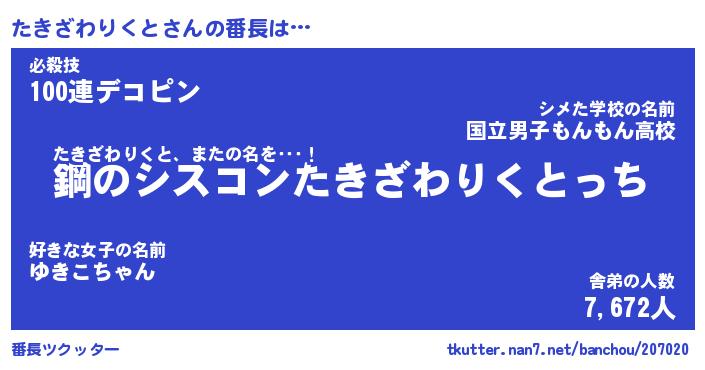 ヘコむあだ名 | 『たきっふぃ~』『つくし』『たきを』 |